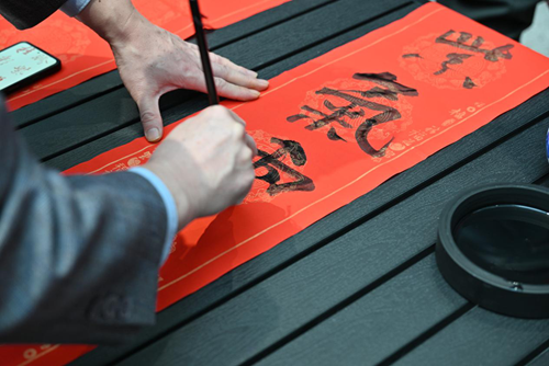 活動當(dāng)天,鄭州市文聯(lián)的書法家們受邀來到現(xiàn)場。他們個個精神飽滿,手執(zhí)毛筆,在一張張紅紙上揮灑自如,書寫著寓意深遠的新年序言。這些序言既是對過去一年的總結(jié),也是對新年的美好期許。書法家們的精彩表演贏得了現(xiàn)場觀眾的連連稱贊,租戶們紛紛表示:“書法家們寫的字真是太好了!‘福’字看著就喜慶,春聯(lián)的寓意也都非常美好。”