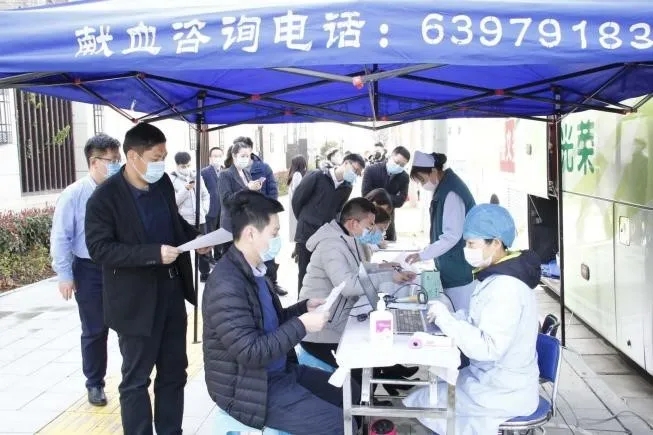 齊聚集團門口義務(wù)獻(xiàn)血點,