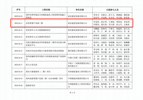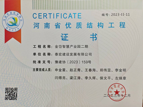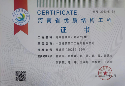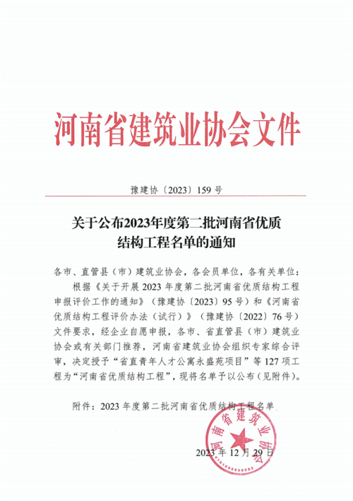 近日,河南省建筑業(yè)協(xié)會(huì)發(fā)布《關(guān)于公布2023年度第二批河南省優(yōu)質(zhì)結(jié)構(gòu)工程名單的通知》(豫建協(xié)〔2023〕159號(hào)),城發(fā)·金岱智慧產(chǎn)業(yè)園二期和龍湖金融中心外環(huán)7號(hào)樓兩項(xiàng)工程順利通過專家組考評(píng),榮獲“2023年度河南省優(yōu)質(zhì)結(jié)構(gòu)工程”獎(jiǎng)。