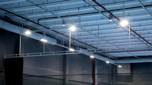 根據(jù)網(wǎng)球球小、球速快的特點,場地照明燈光采用兩側(cè)和頂部混合布置的方式,嚴格控制照明水平,以滿足運動中球友們通過視覺掌握球速和運動方向,作出快速反應(yīng)的要求。