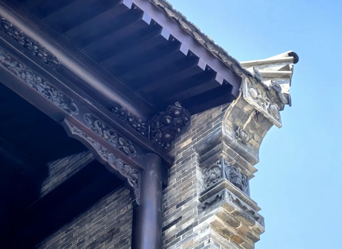 與之相對(duì)的17號(hào)樓主題為仙鶴,主題靈感來自于“仙鶴的故鄉(xiāng)”鶴壁。建筑上精美的墀頭也表達(dá)了此棟院子的主題,其上段位仙鶴,寓意松鶴延年,墀頭下端位仙鹿,寓意福祿綿長(zhǎng)。而這處雕刻精美又涵義豐富的墀頭設(shè)計(jì)來源于河南鶴壁的古城摘星臺(tái)公園。
