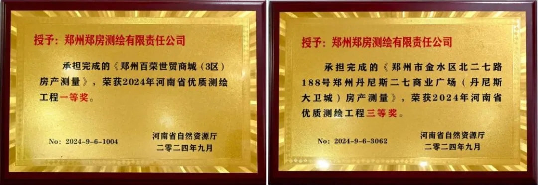 近日,河南省自然資源廳發(fā)布2024年“河南省優(yōu)質(zhì)測繪工程獎”評選結(jié)果,其中,鄭州鄭房測繪有限責任公司獲得“河南省優(yōu)質(zhì)測繪工程獎”一等獎1項、三等獎1項。