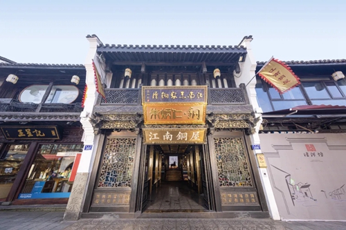 以朱炳仁團(tuán)隊(duì)打造的銅屋系列為例:入駐亳都·新象的“中原銅屋”是其全國第四家、華中第一家銅屋。建筑內(nèi)部以超高、超寬的銅板工藝打造出“銅盒子”視覺焦點(diǎn),磚木結(jié)構(gòu)搭配著銅與玻璃的碰撞,產(chǎn)生時(shí)空交錯(cuò)的美感。“中原銅屋”整體風(fēng)格和中原民居相適配,當(dāng)訪客的指尖掠過帶有紋飾的銅器,恰似完成一場跨越三千年的文明對(duì)話——要知道,商城遺址曾出土過杜嶺方鼎等商代青銅文明的巔峰之作,這份地域文化根脈在此得到了呼應(yīng)。
