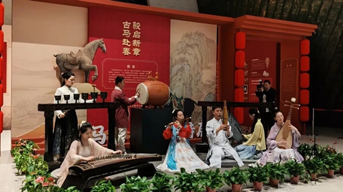 隨后,《古馬赴春 駿啟新章》的古樂表演悠揚回蕩,身著商都元素華服的模特款款而行,演繹著古老文明的時尚新生。嘉賓們在此解碼中國早期文明的根脈,感受歷史可觸、可品、可共鳴的鮮活氣息。