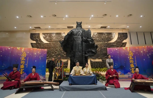 當(dāng)晚,博物院不再是靜默的展廳,而化身為穿越時空的舞臺。以莊嚴的商湯雕像為背景,古器樂節(jié)目《商王的盛宴》奏響,悠揚古樂聲中,商湯與民同宴、祈求順遂的歷史場景再現(xiàn)眼前,令人恍若穿越三千年。